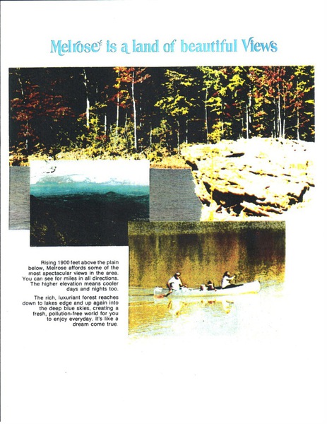 Established in the 1970's, Melrose Mountain was originally promoted as "a land of beautiful Views", and it is most definitely that. Here's some text from that early brochure.